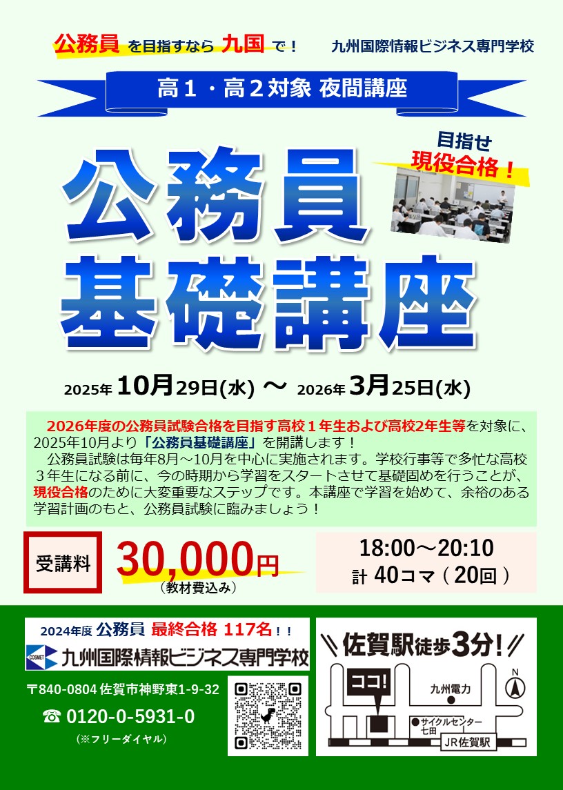 2026年向け大卒程度公務員講座が10月20日(月)からスタート!受講受付中!