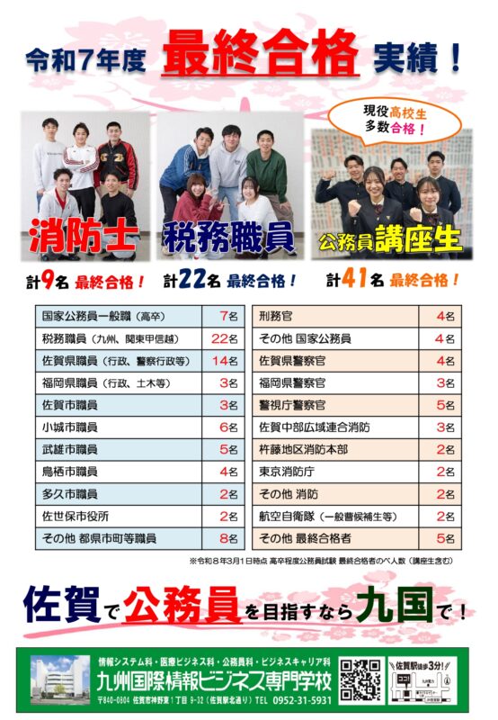 佐賀で公務員最終合格を目指すなら、九国へ!!