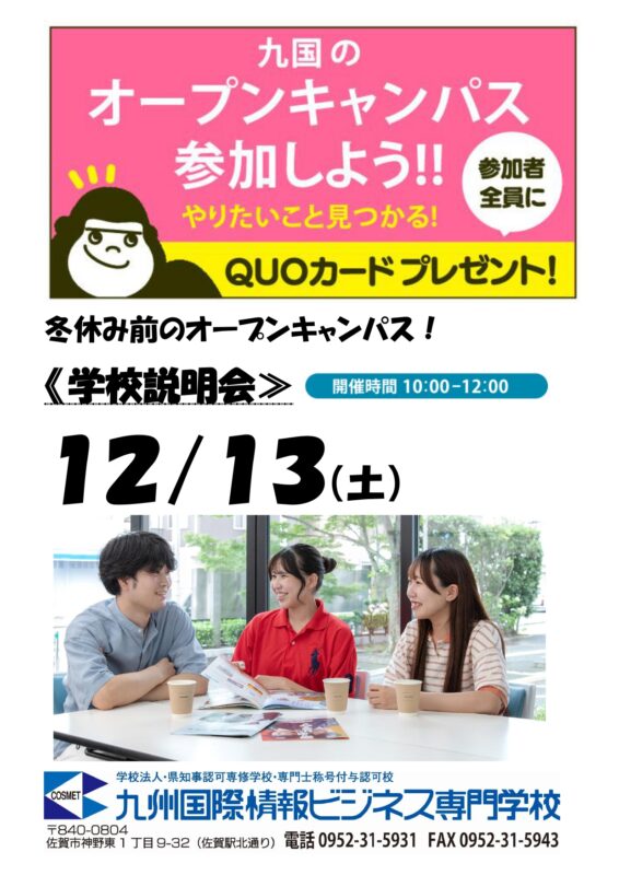 > 🎄12月13日(土) オープンキャンパスお待ちしています