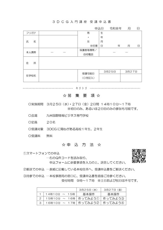 その他、講座に関するお問い合わせは九州国際情報ビジネス専門学校(☎0120-0-5931-0)まで。