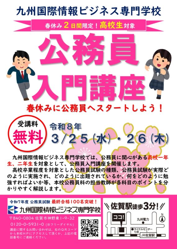 公務員入門講座【春休み 無料講座】申込受付中!